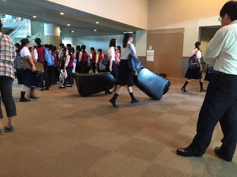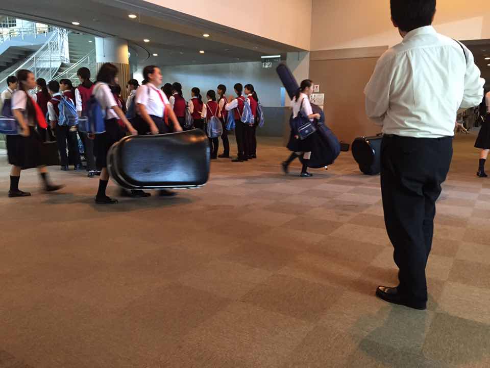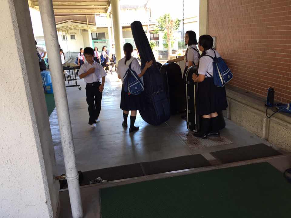 最後に手持ち可能な楽器と一緒に生徒が乗り込みます