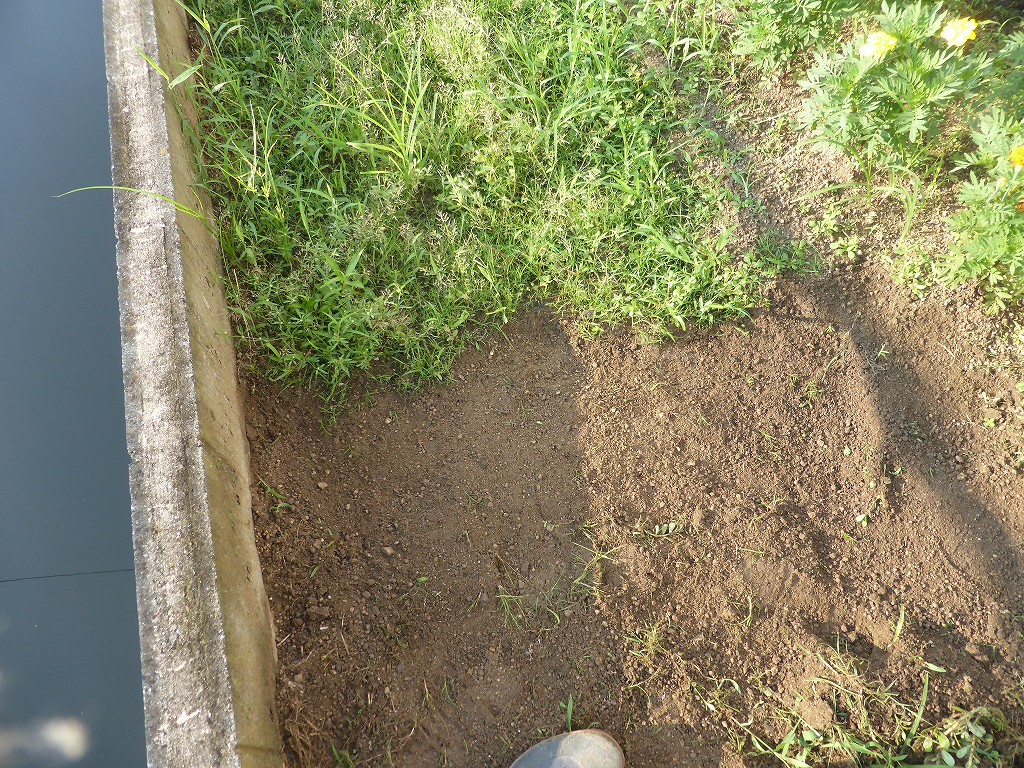 昨日の夕立のおかげで、少しは土も柔らかいです