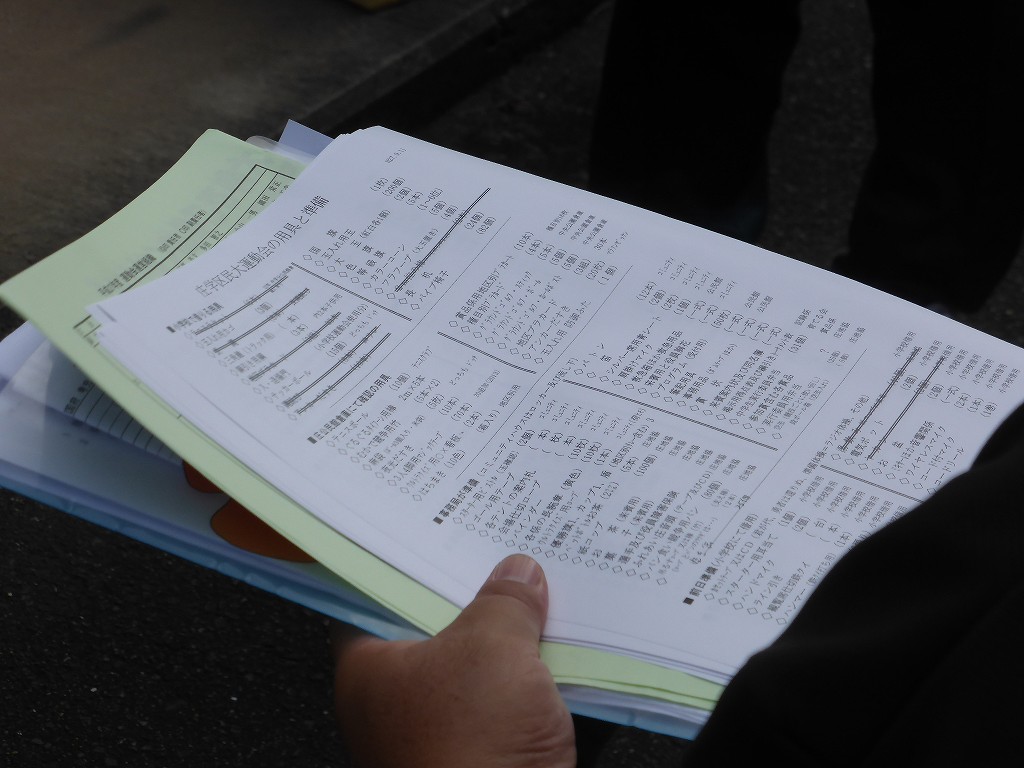 当日必要な用具は、事務局で一覧にしています