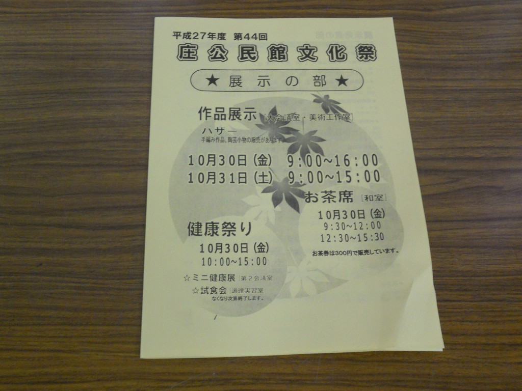 今日は公民館の文化祭最終日と知っていたのですが