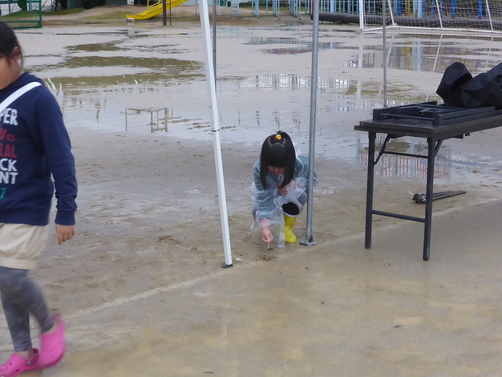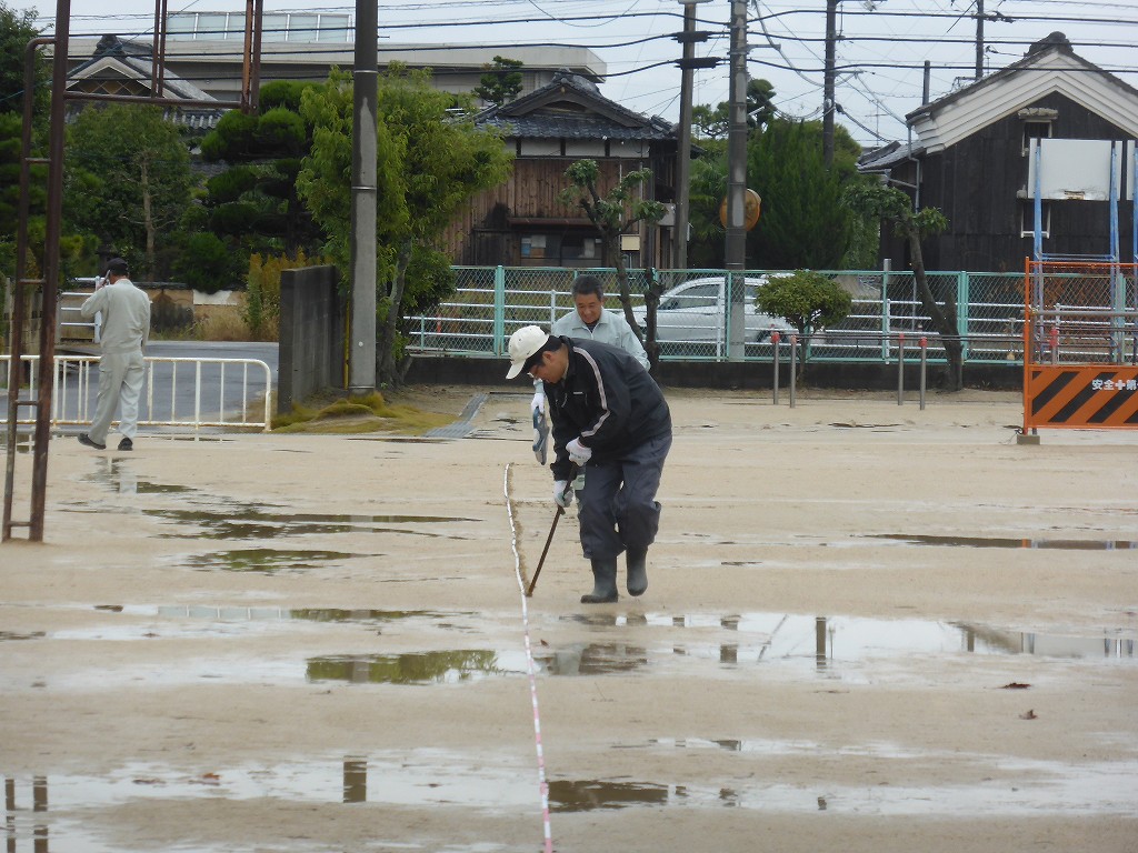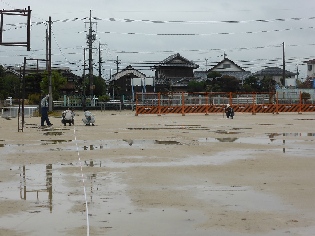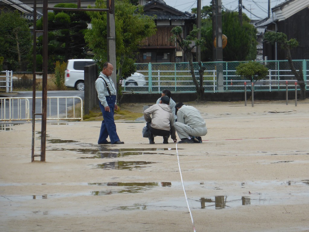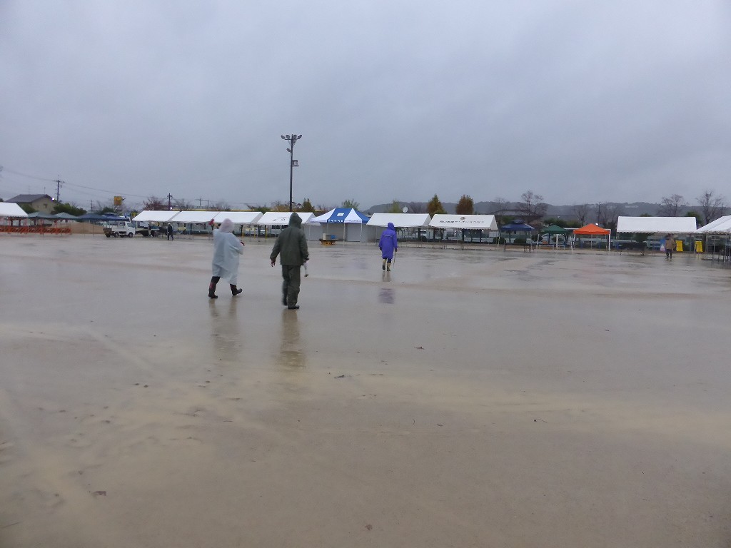 グラウンドは降ったり止んだりの雨で、ごらんの通りです