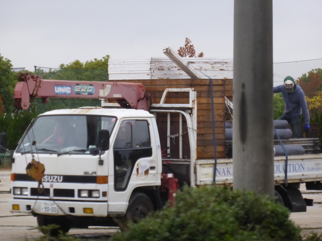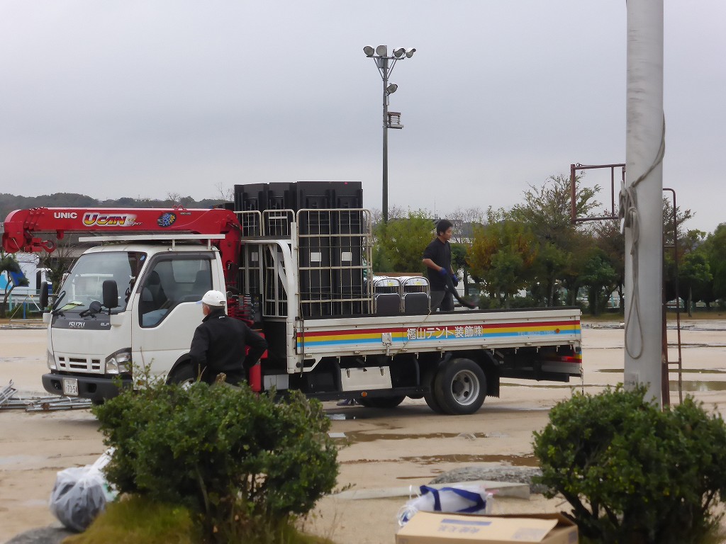 14時半、時間通りにステージやテントを積んだトラックが到着