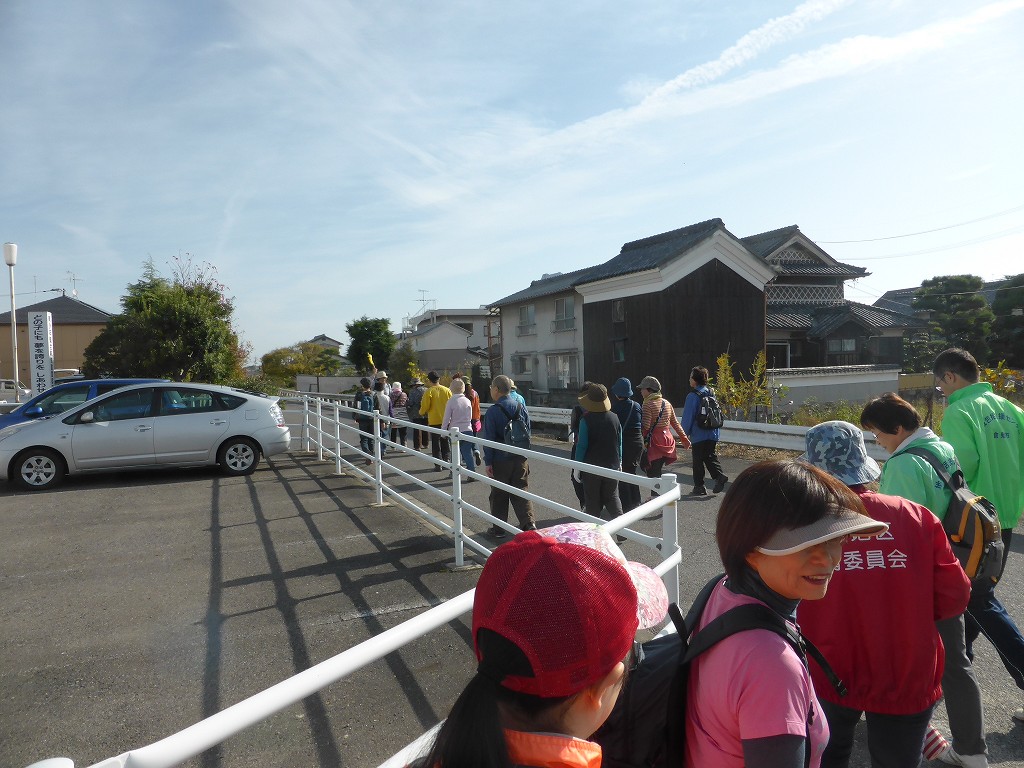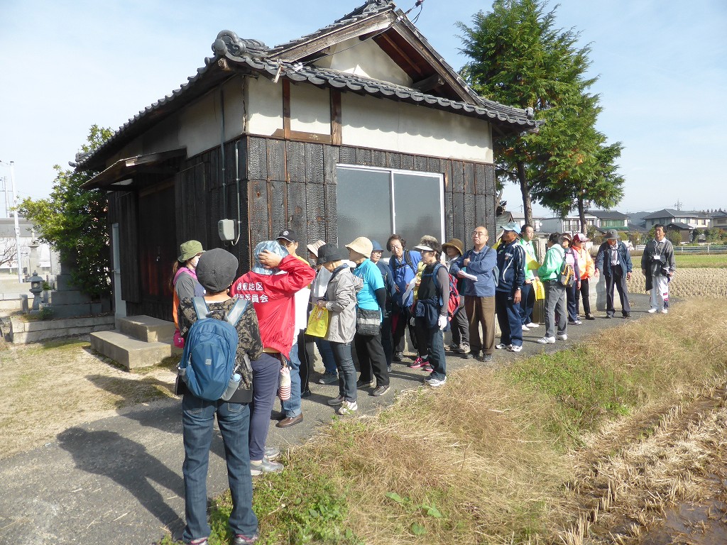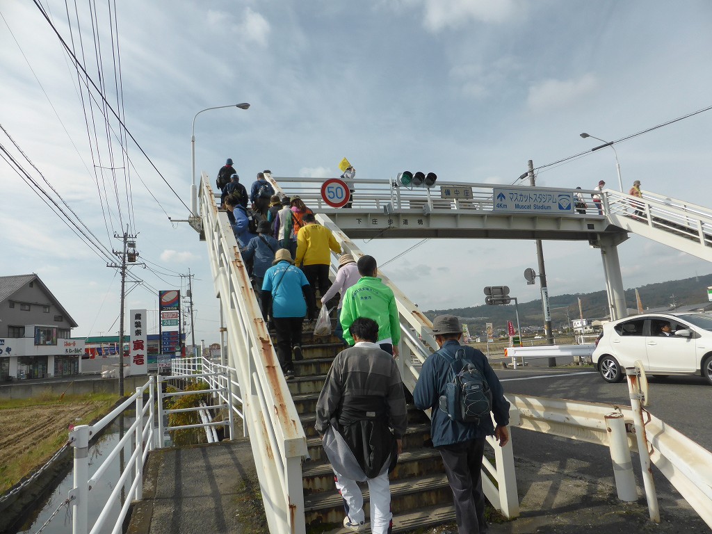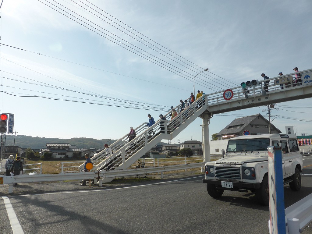 一行はなおも南へ、歩道橋を越えて下庄公民館を東へ
