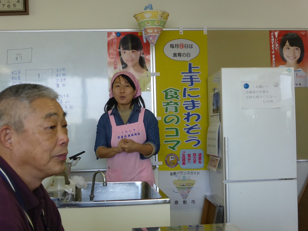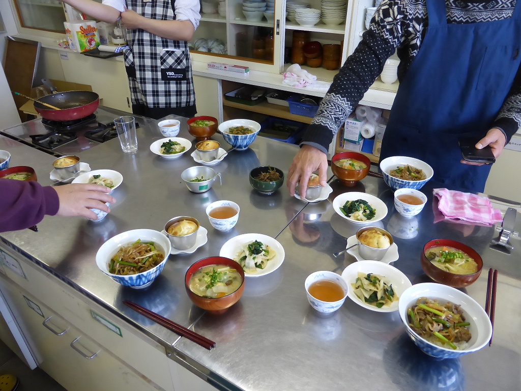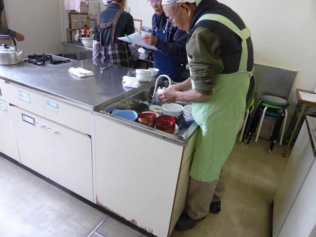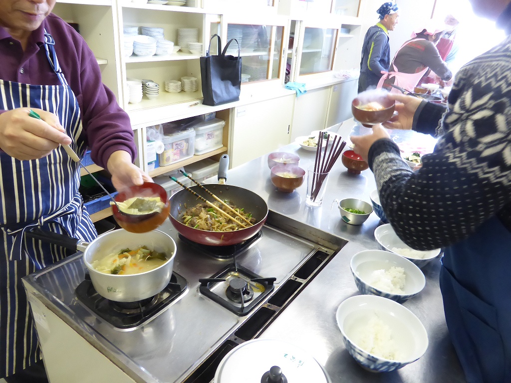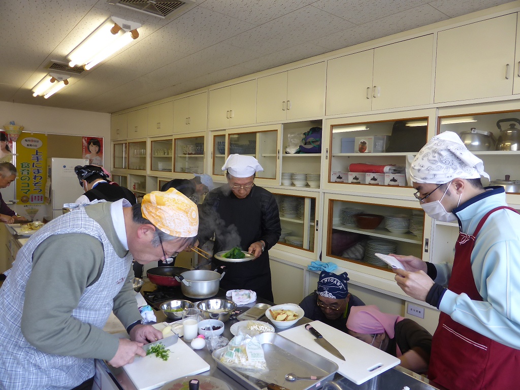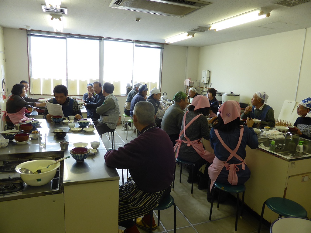 各テーブルに3~4名の参加者(もちろん男性)と補助の栄養改善の方