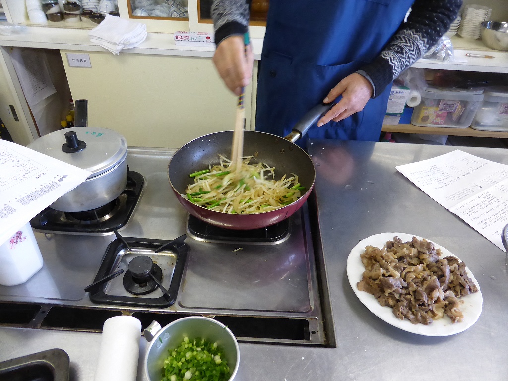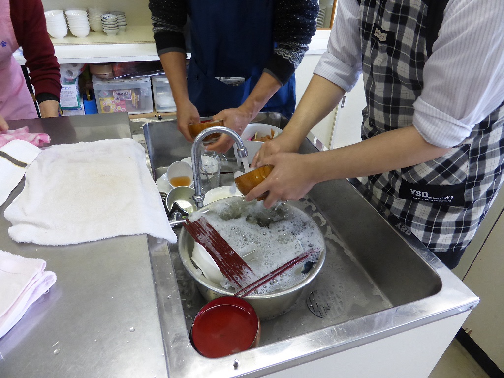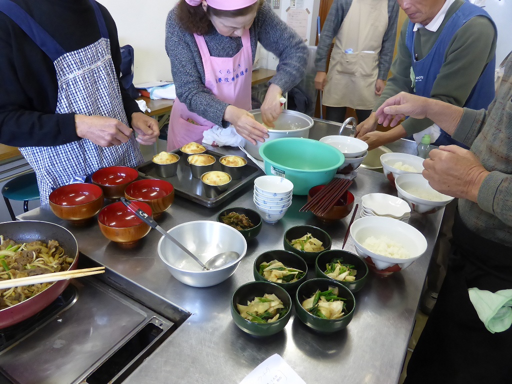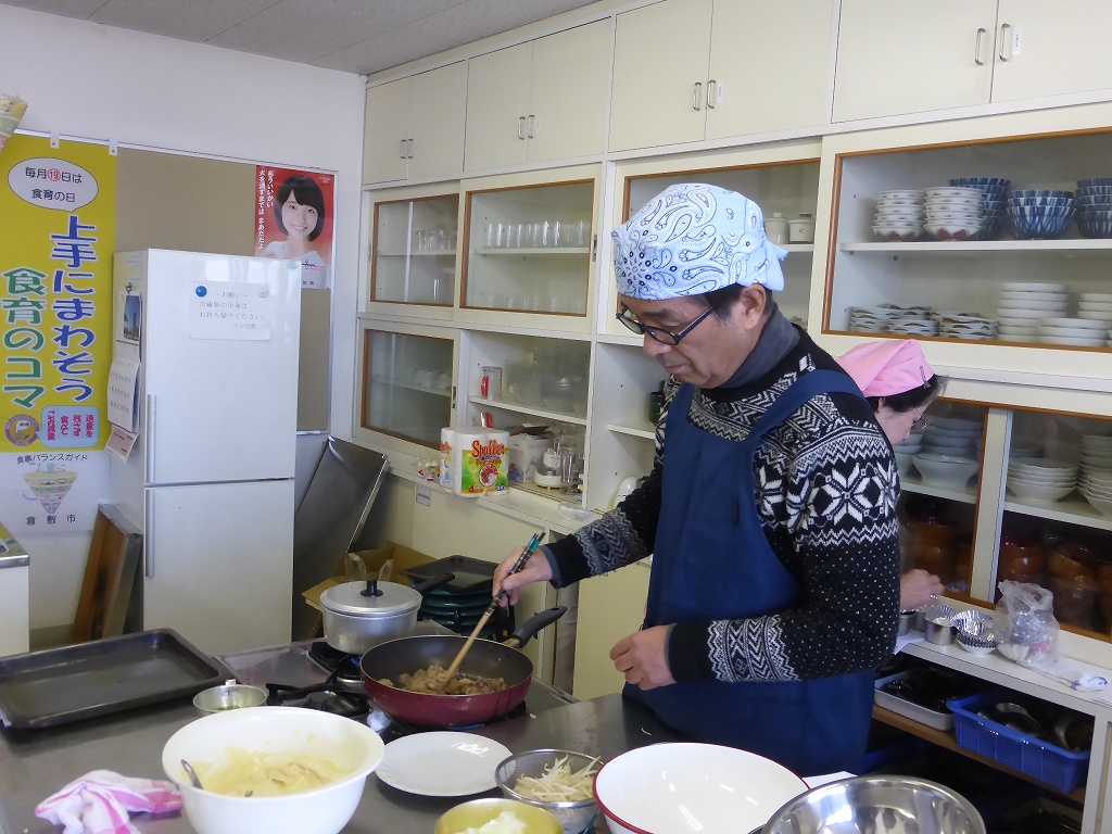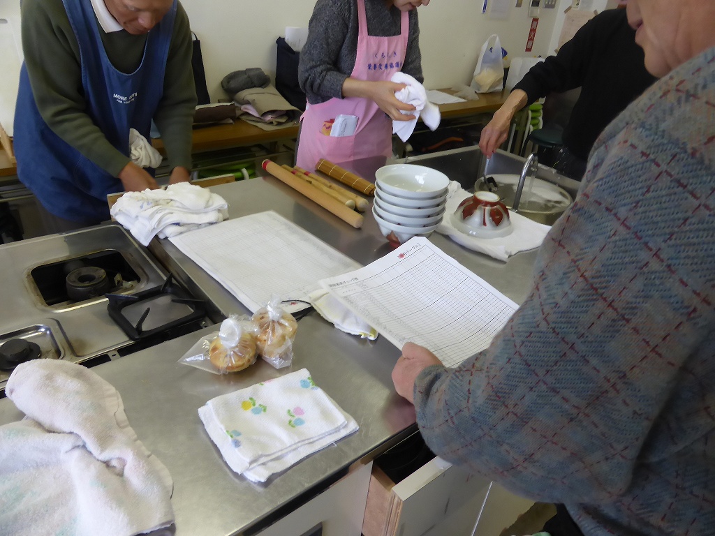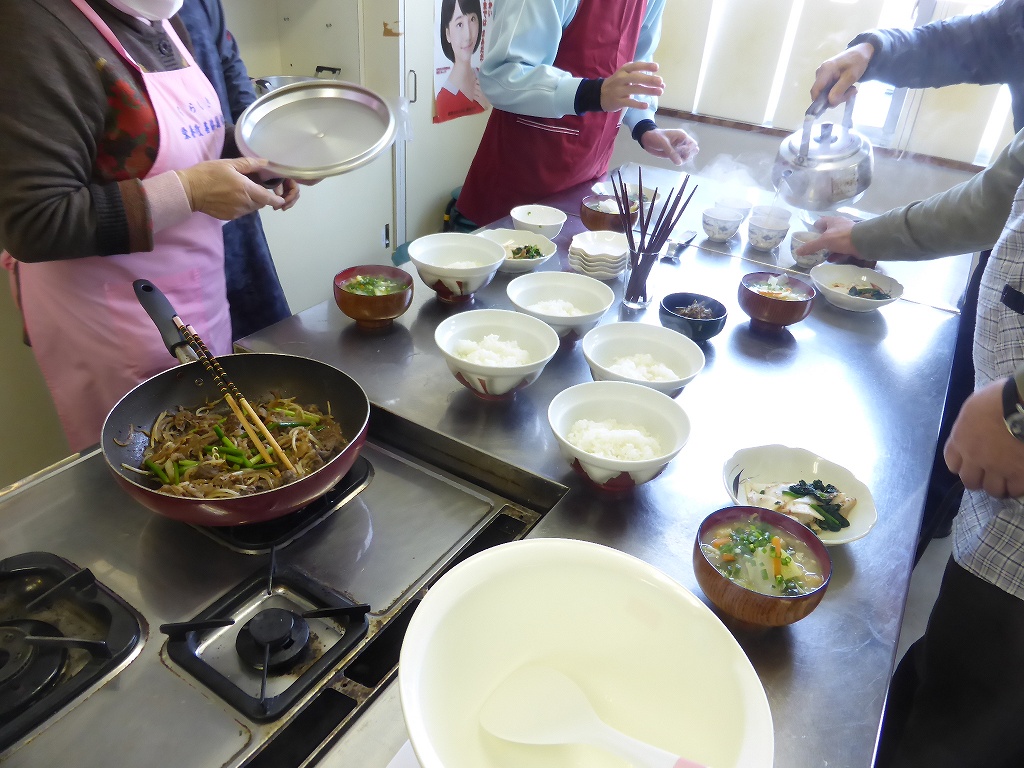 各テーブルに3~4名の参加者(もちろん男性)と補助の栄養改善の方