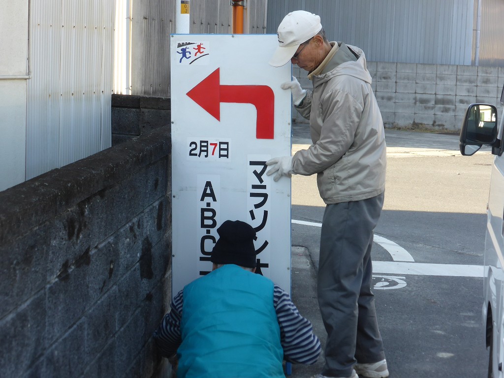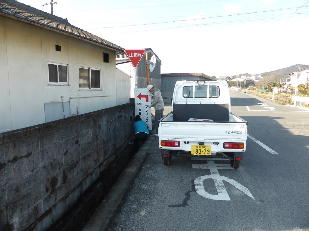 マラソンのコースの途中途中に看板を設置します