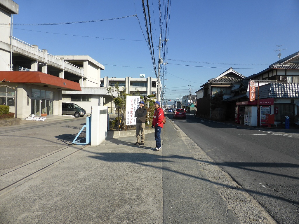 私はスタンプ押しですが、学校前の道路