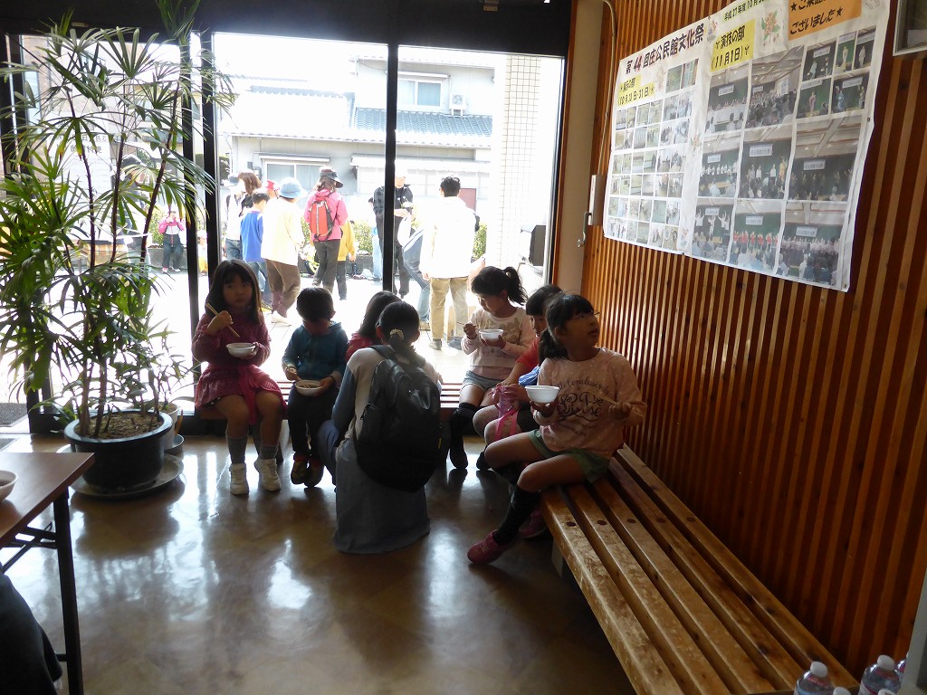 庄公民館で迎えてくれるのは、栄養改善協議会さんのぜんざい