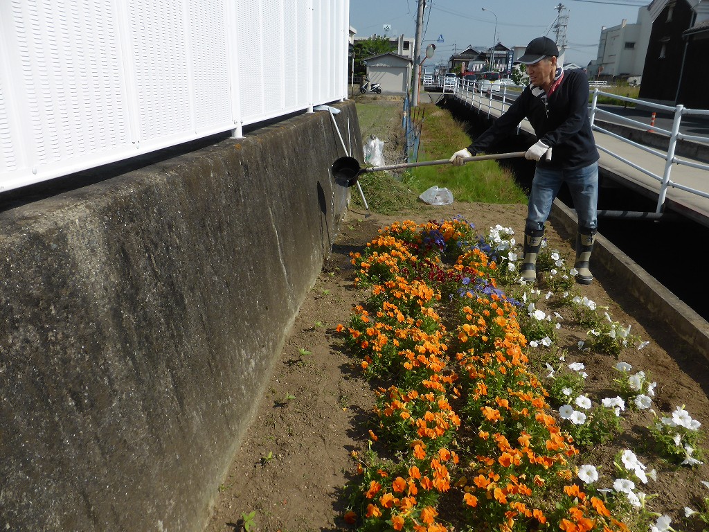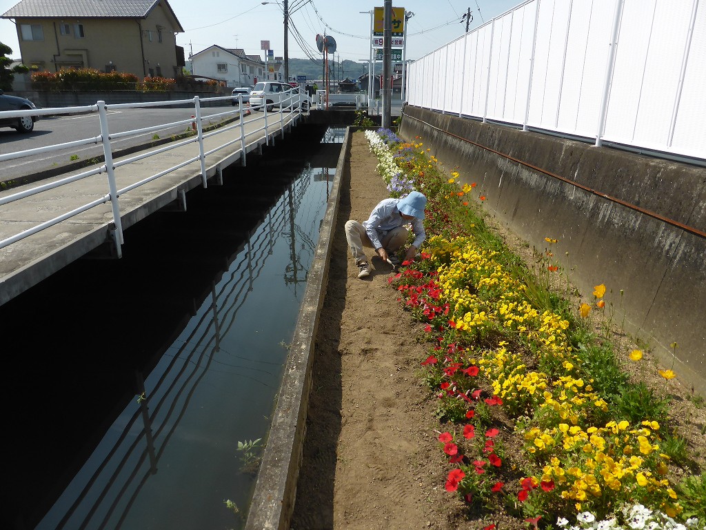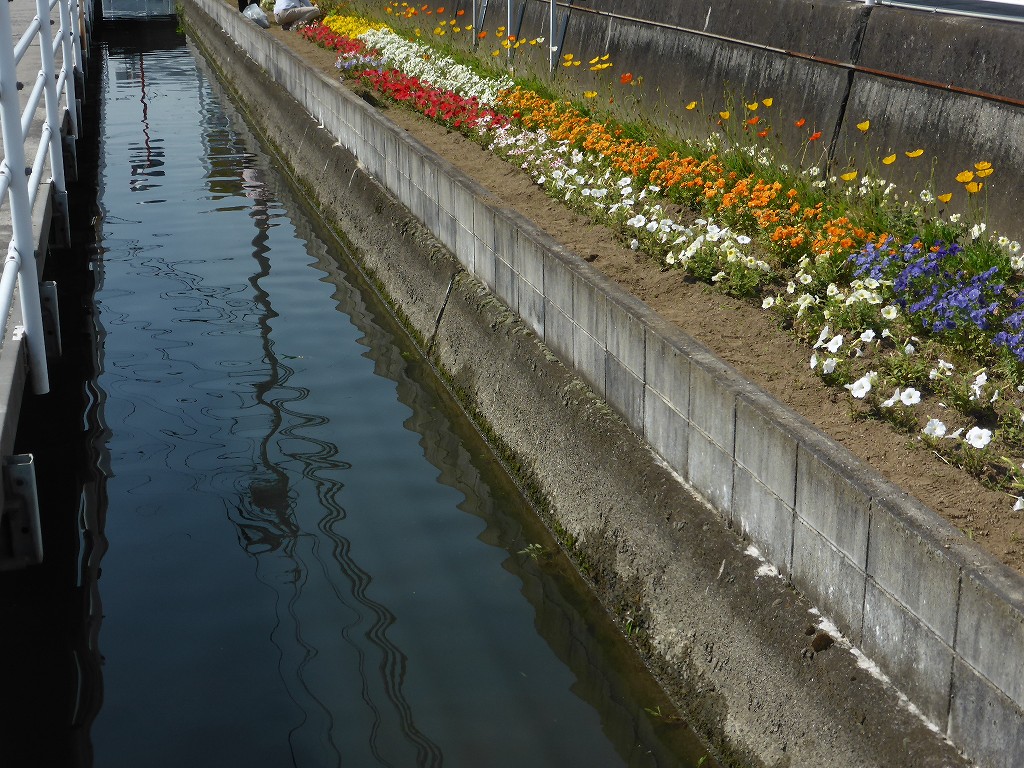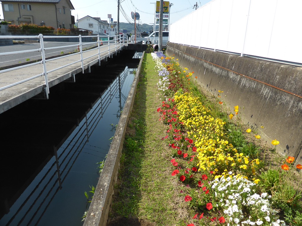 花壇はもちろん、用水路やプール脇にも・・・