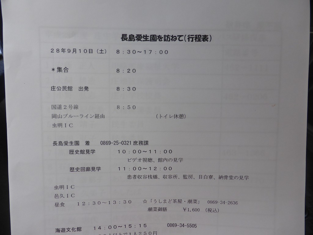 今回の研修視察は、8:20庄公民館集合、8:30出発です
