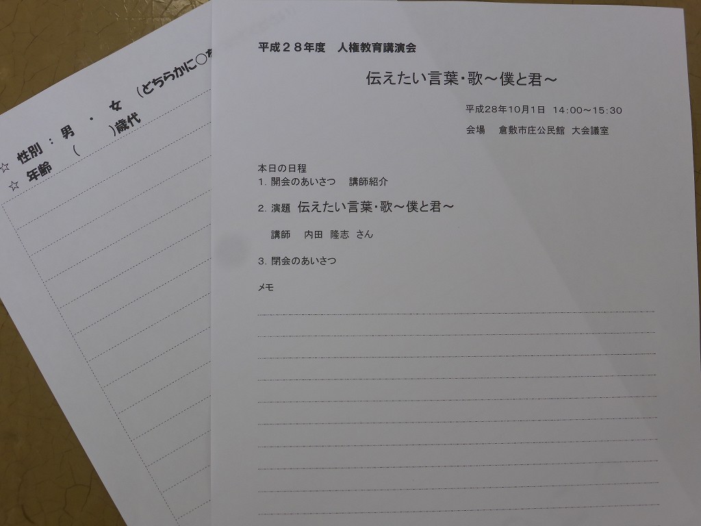 講演は内田隆志先生による「伝えたい言葉・歌~僕と君」です