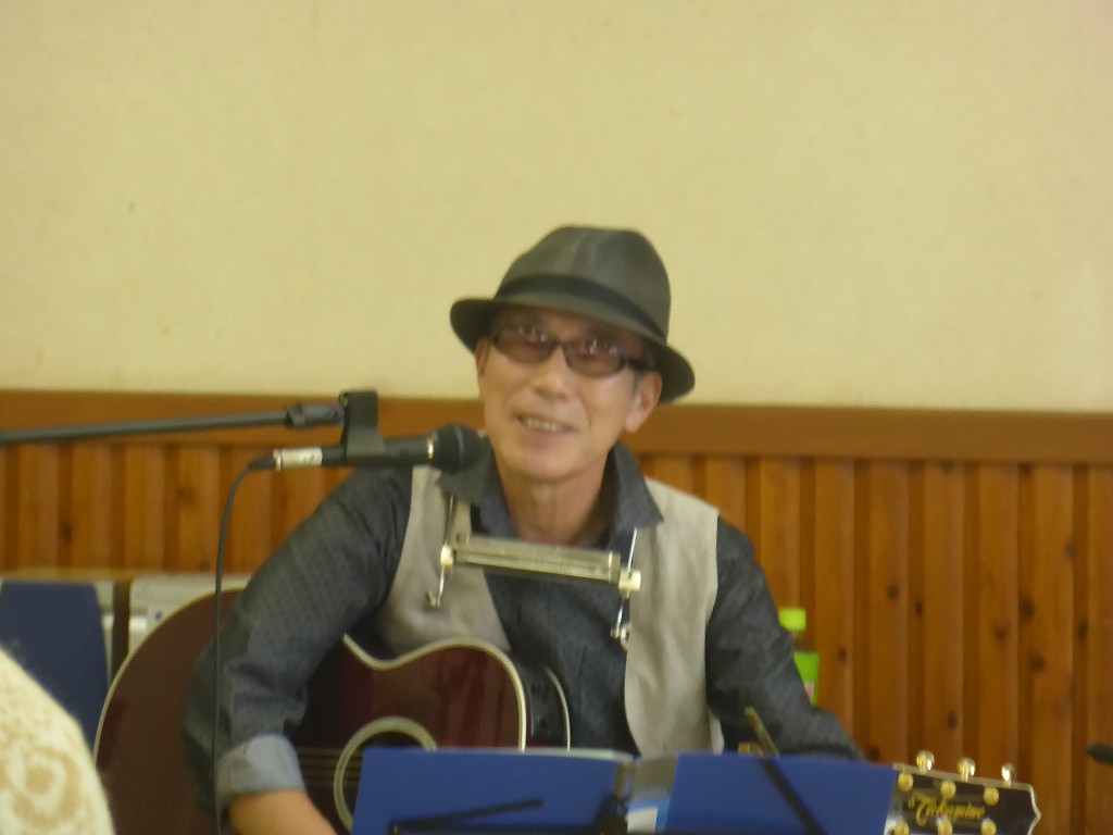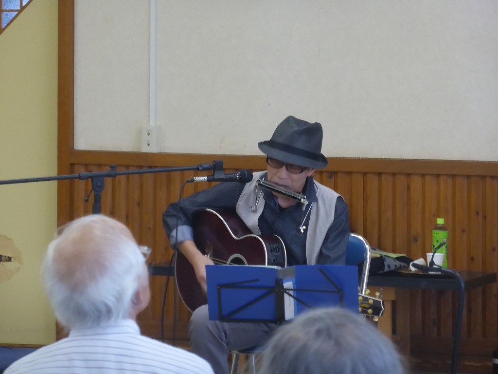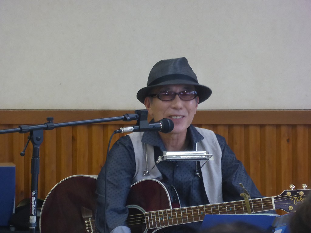 アコースティックギターにハーモニカ、私の時代の「フォークシンガー」そのものです