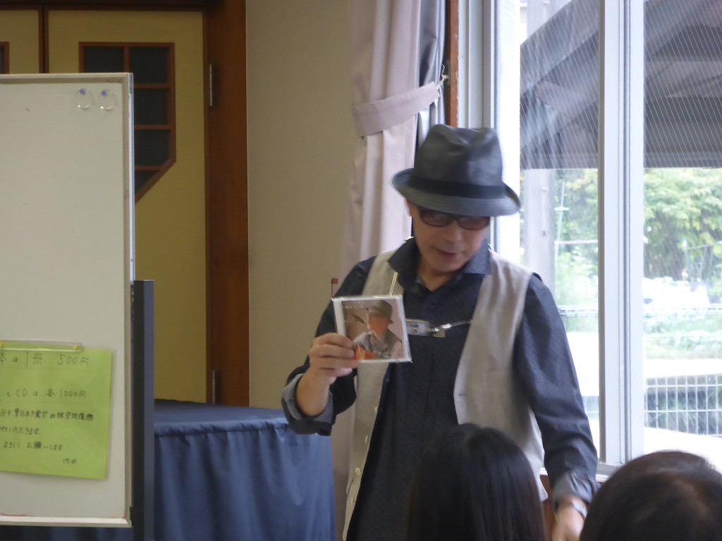 講演の最後、自作の絵本やCDの紹介をされてました