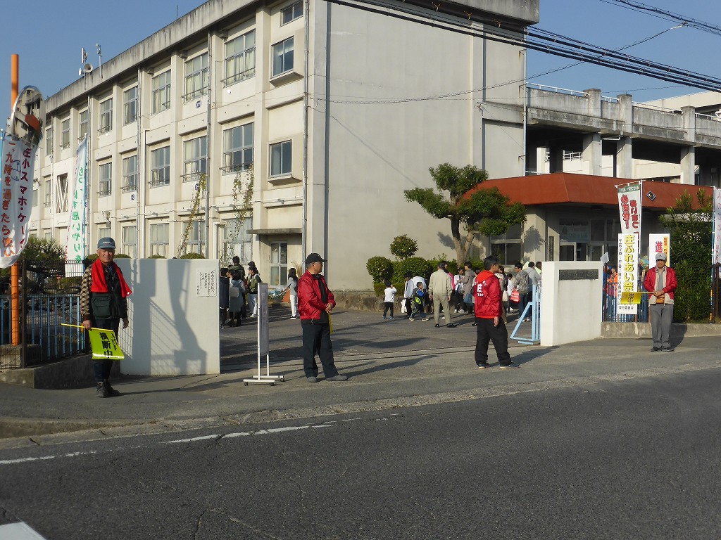 校門前の交通整理も始まっています