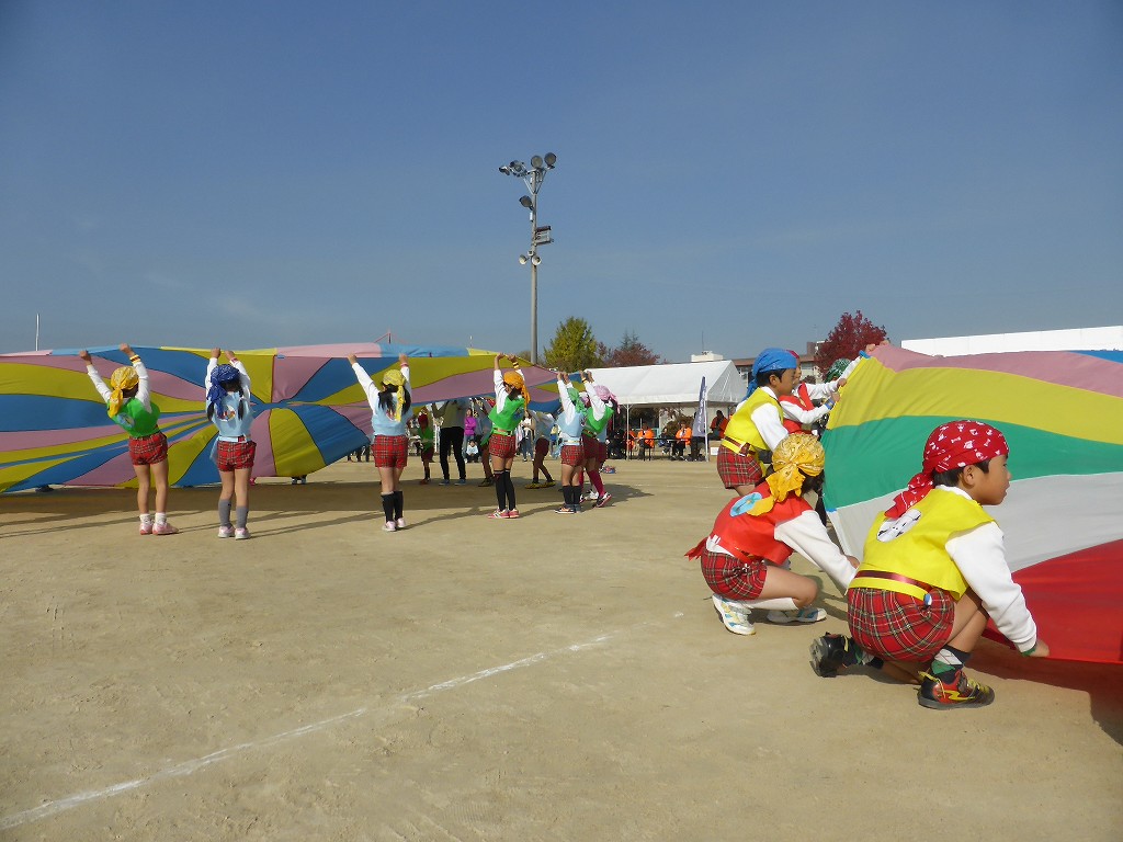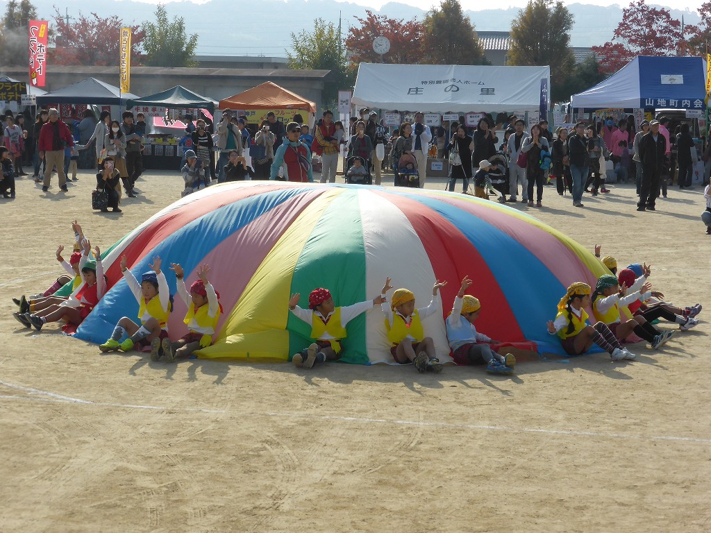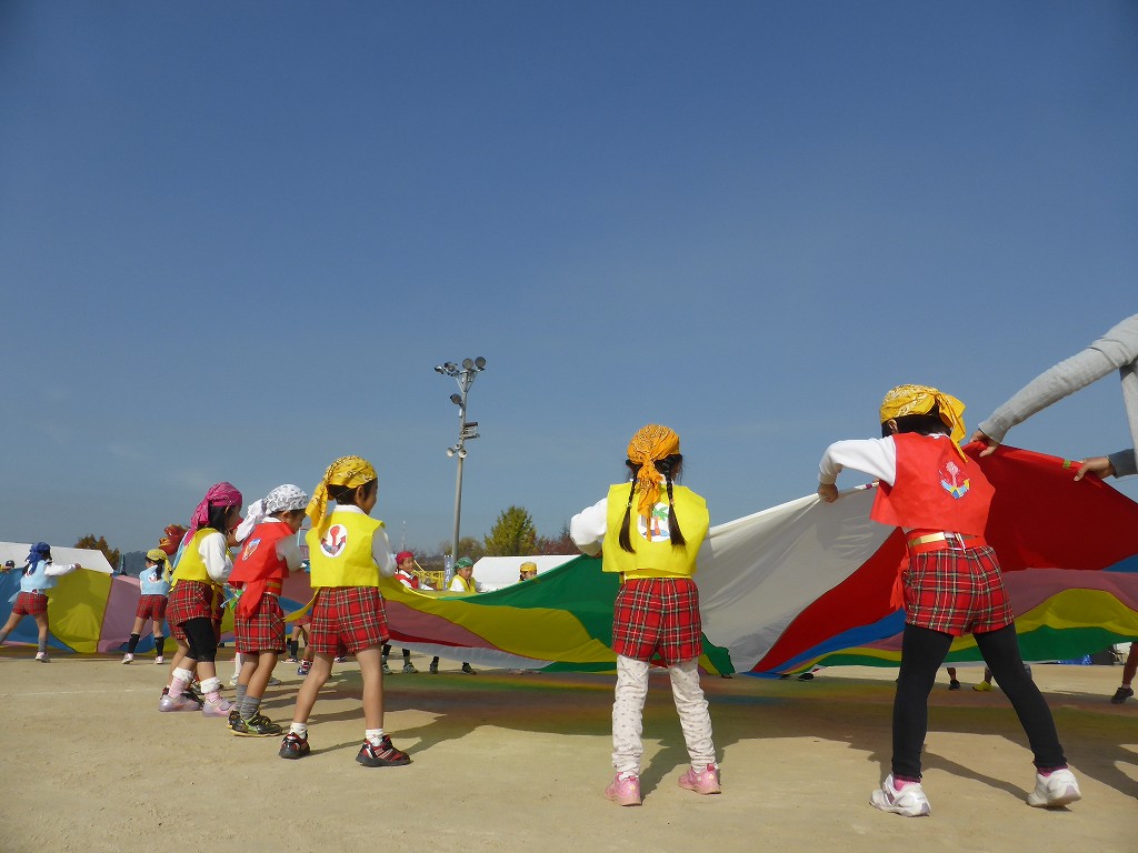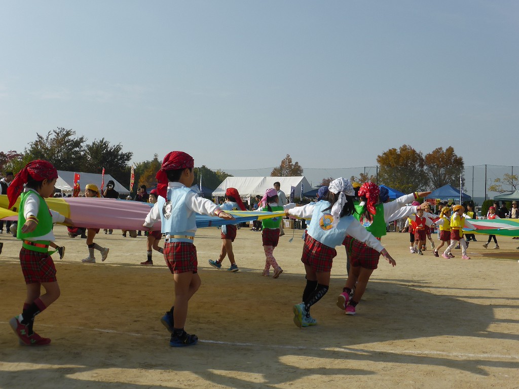 庄幼稚園ふじ組・ゆり組による「パラバルーン」の演技です