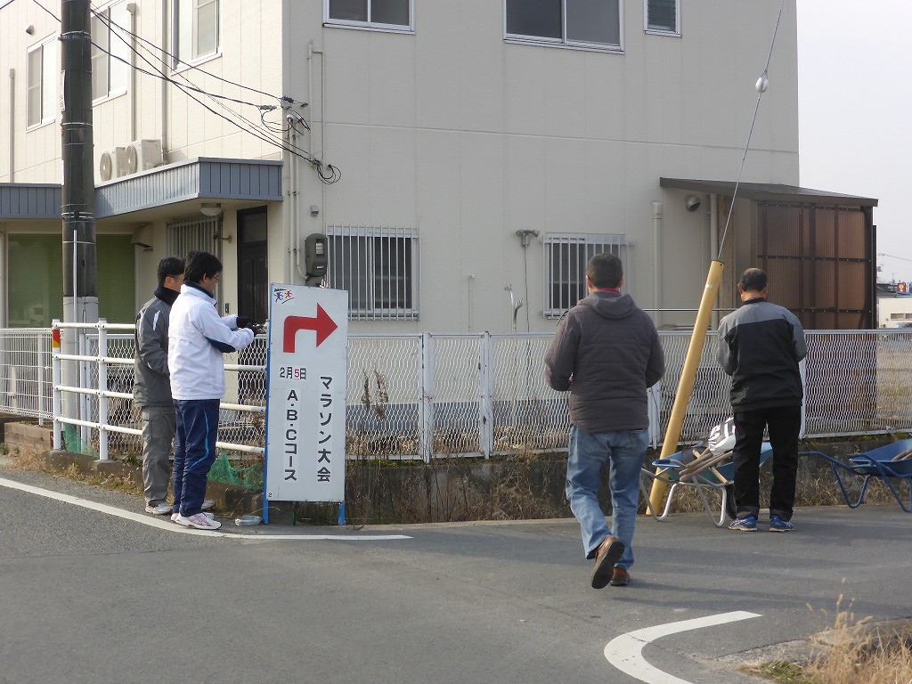 例によって、男性チームはコース看板設置です
