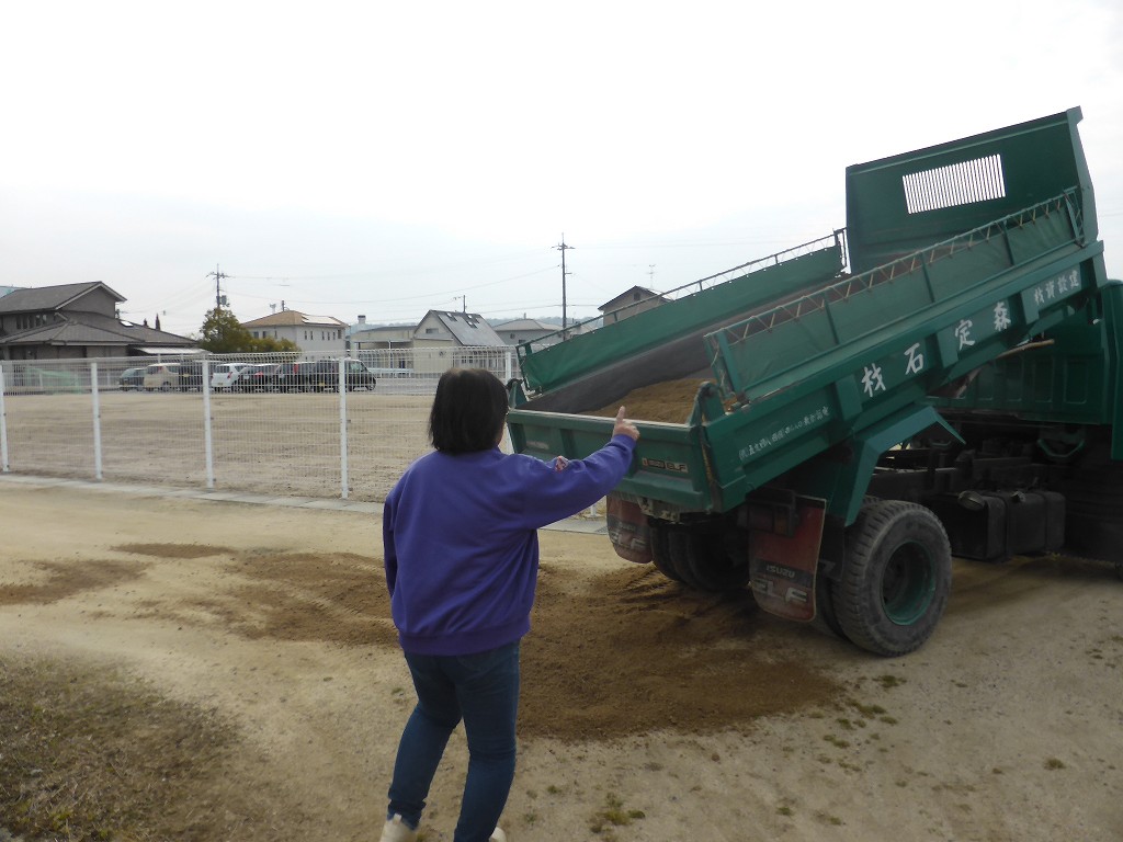未舗装道路に着くと、もう半分以上土を下ろしていました