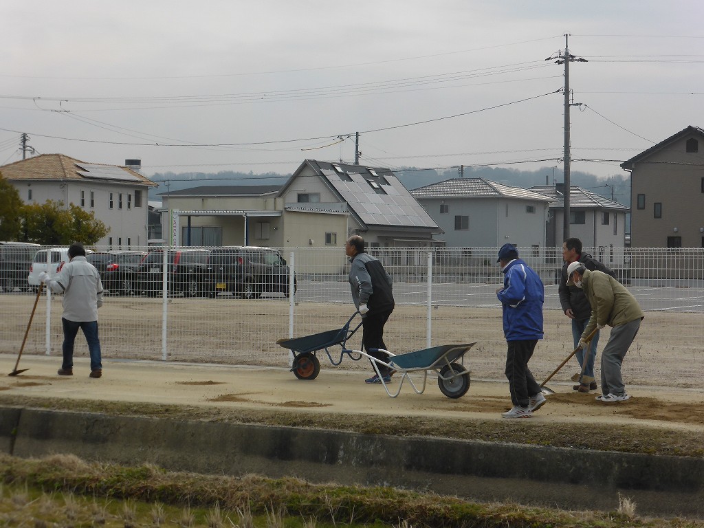 穴の部分に多めにいれ、それなりに固めて、地ならしです