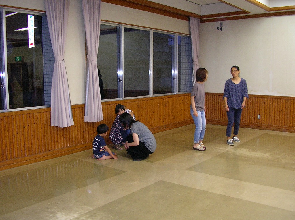 ちょうど暗くなり、大会議室の窓がいい鏡になり、踊りもチェック