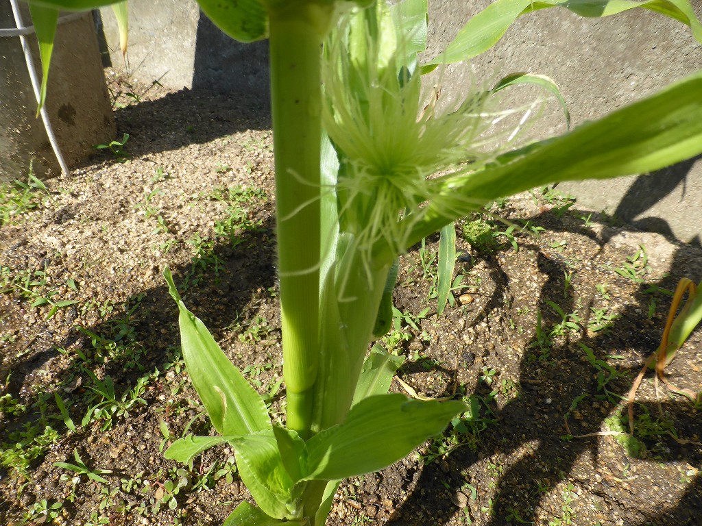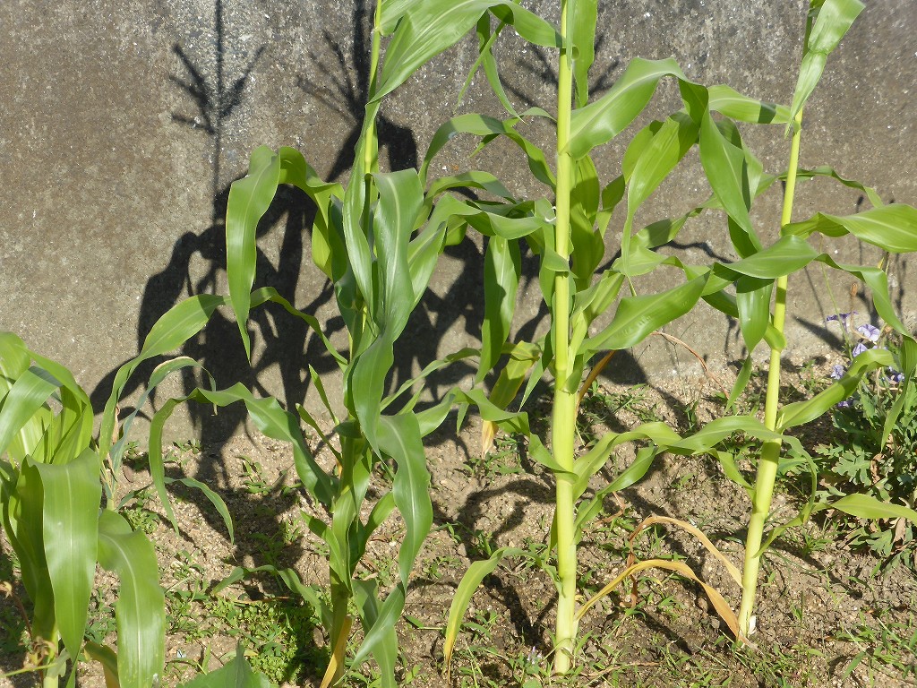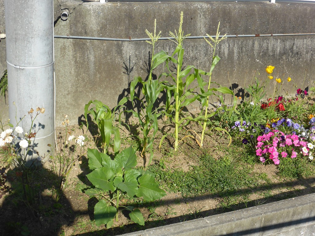 何はともあれ私のトウオロコシと事務局長のヒマワリです