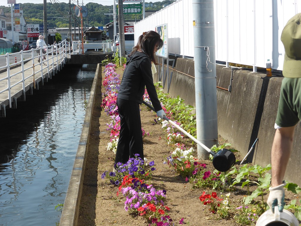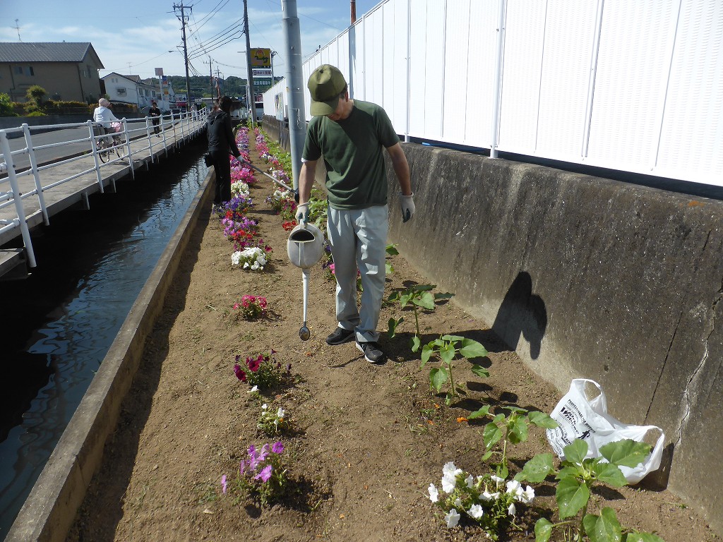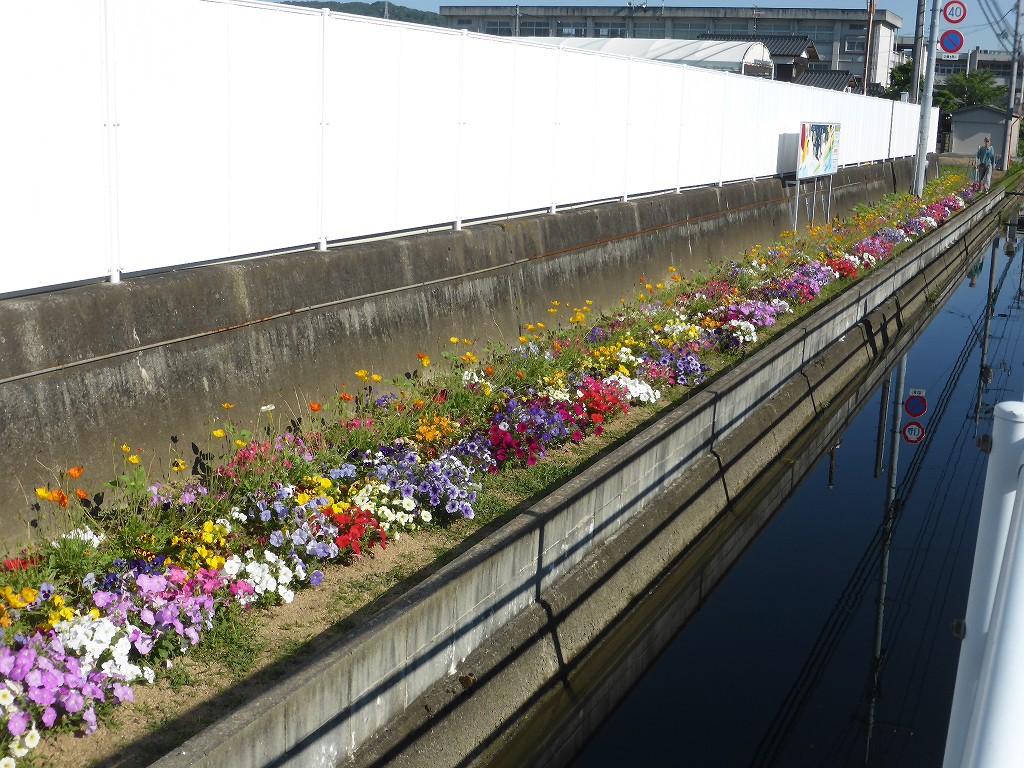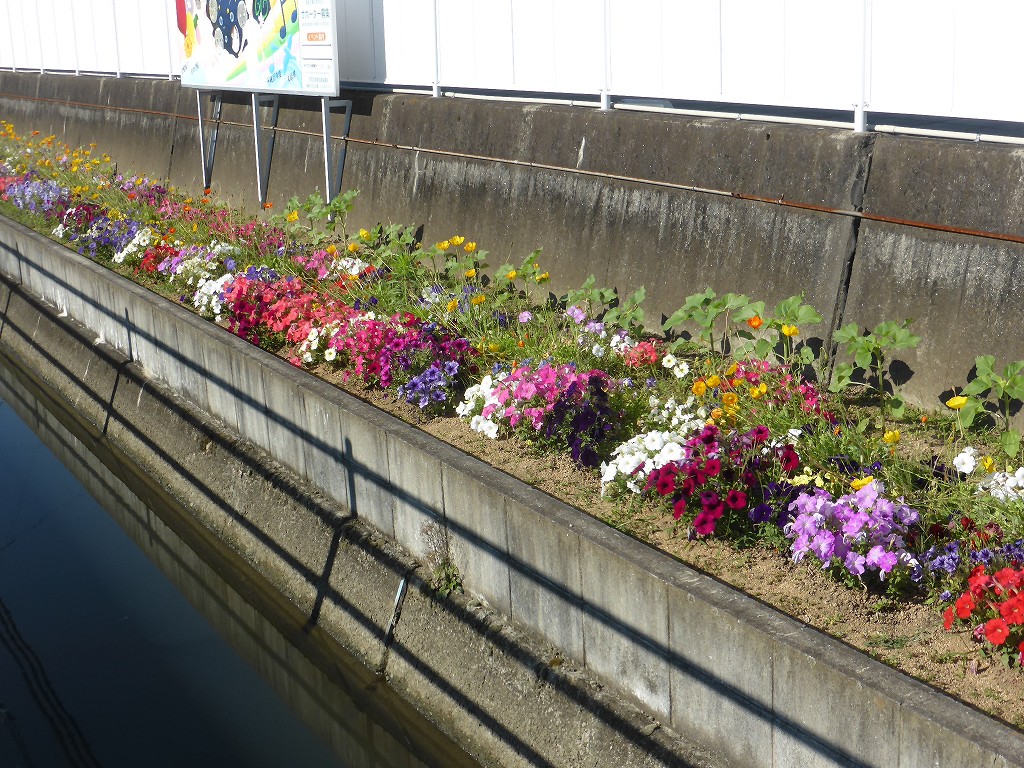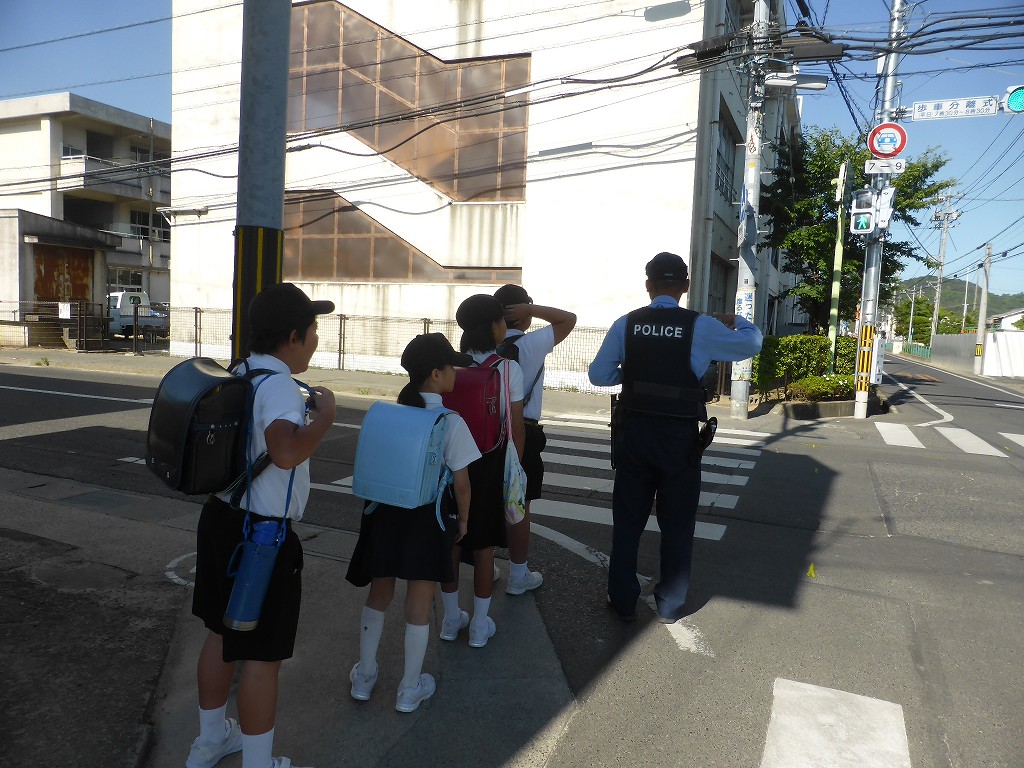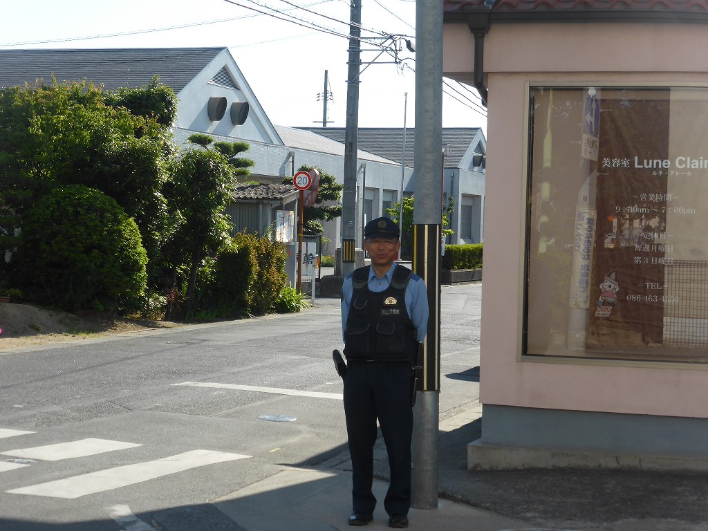花壇を通り過ぎて、おまわりさんの活躍ぶりを