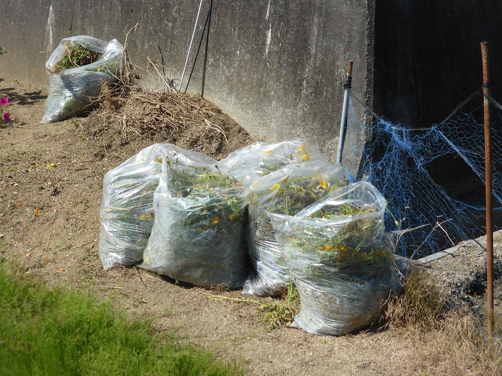 今日は終わり近くになったポピーとパンジーも抜くようです