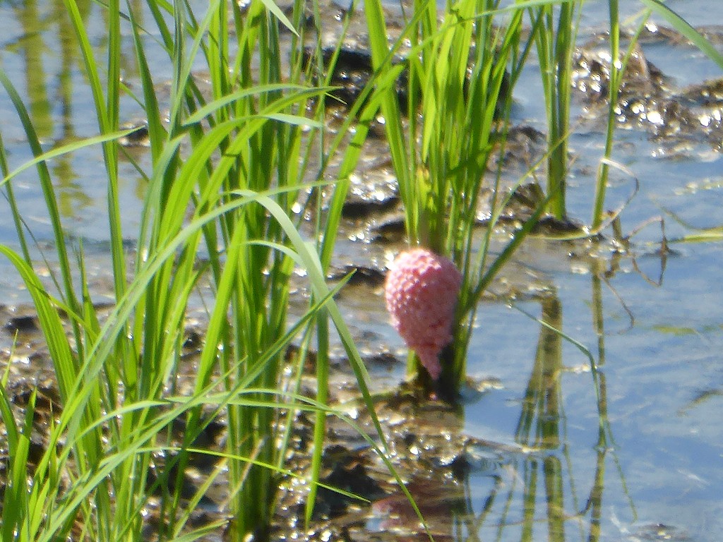 帰り・・・、隣の田んぼにジャンボタニシの卵発見