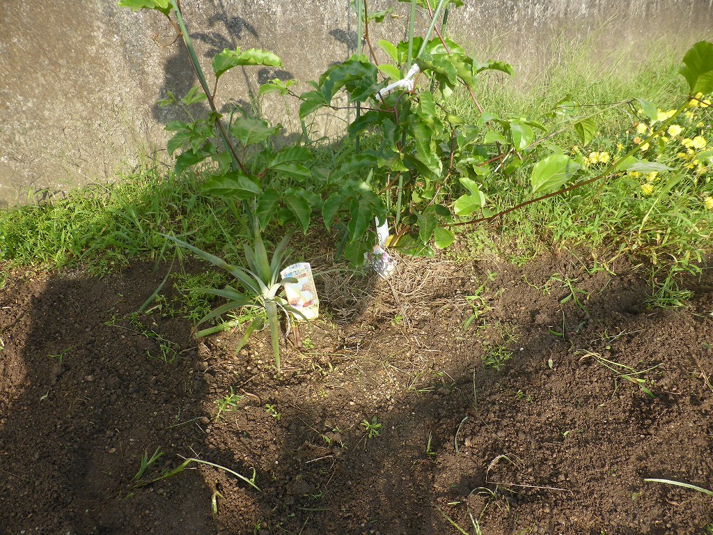 まずは、スナックパインとパッションフルーツ周りの草取り