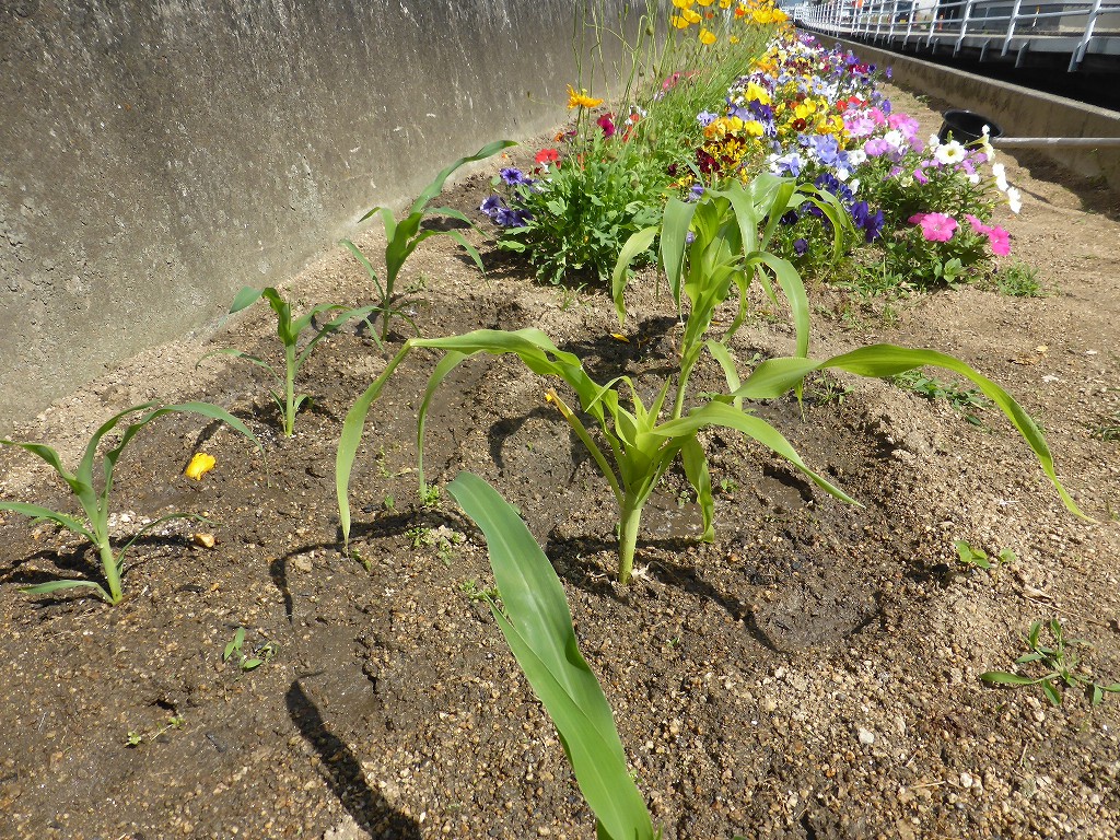 連休の間に、こっそりトウモロコシを植えさせてもらいました