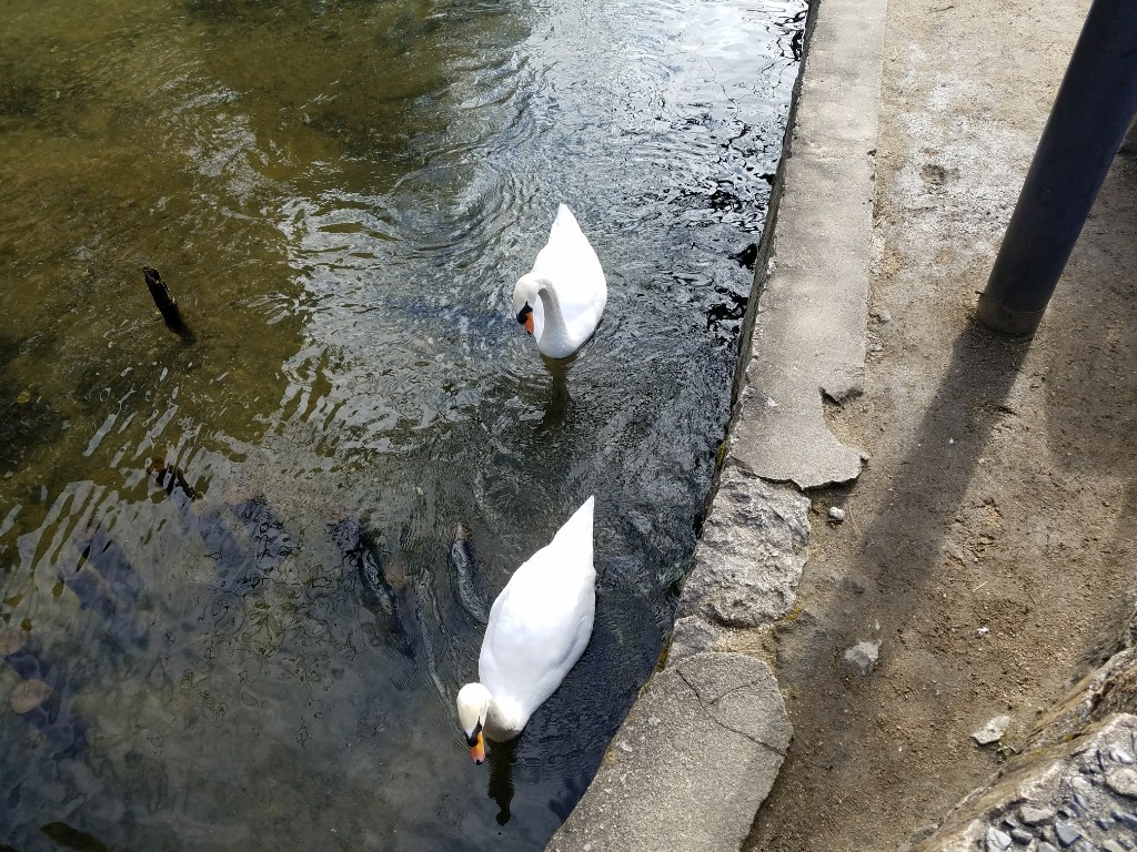 エサ箱がからっぽで、人が近付くと寄ってきます